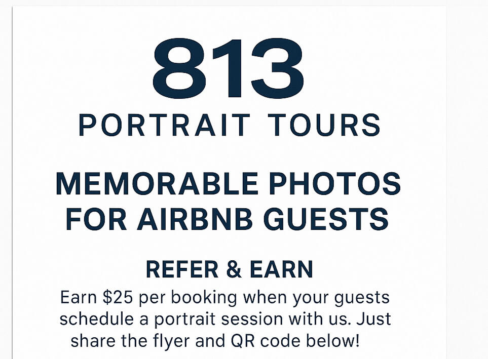 Try a free mini shoot + get referral bonuses when guests book. We’ll provide the flyer, QR code, and link— easy and professional.